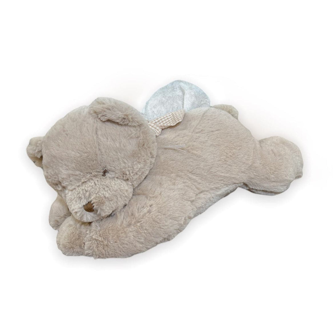 A teddy bear that allows you to store a package of wipes in a convenient and easy way. The bear's belly has a compartment designed to store a package of wipes and an opening for easy retrieval of the wipes.